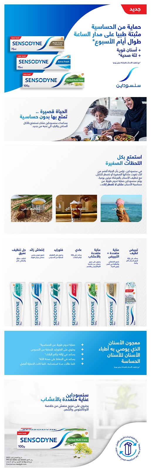 - معجون أسنان مثبت سريريًا وحماية يومية للأسنان الحساسة.